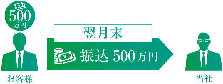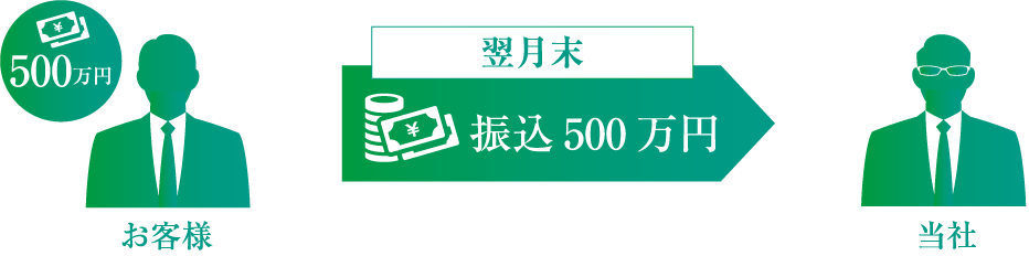 予定の翌月末に請求先から入金時に弊社に500万円をお振込み頂きます。